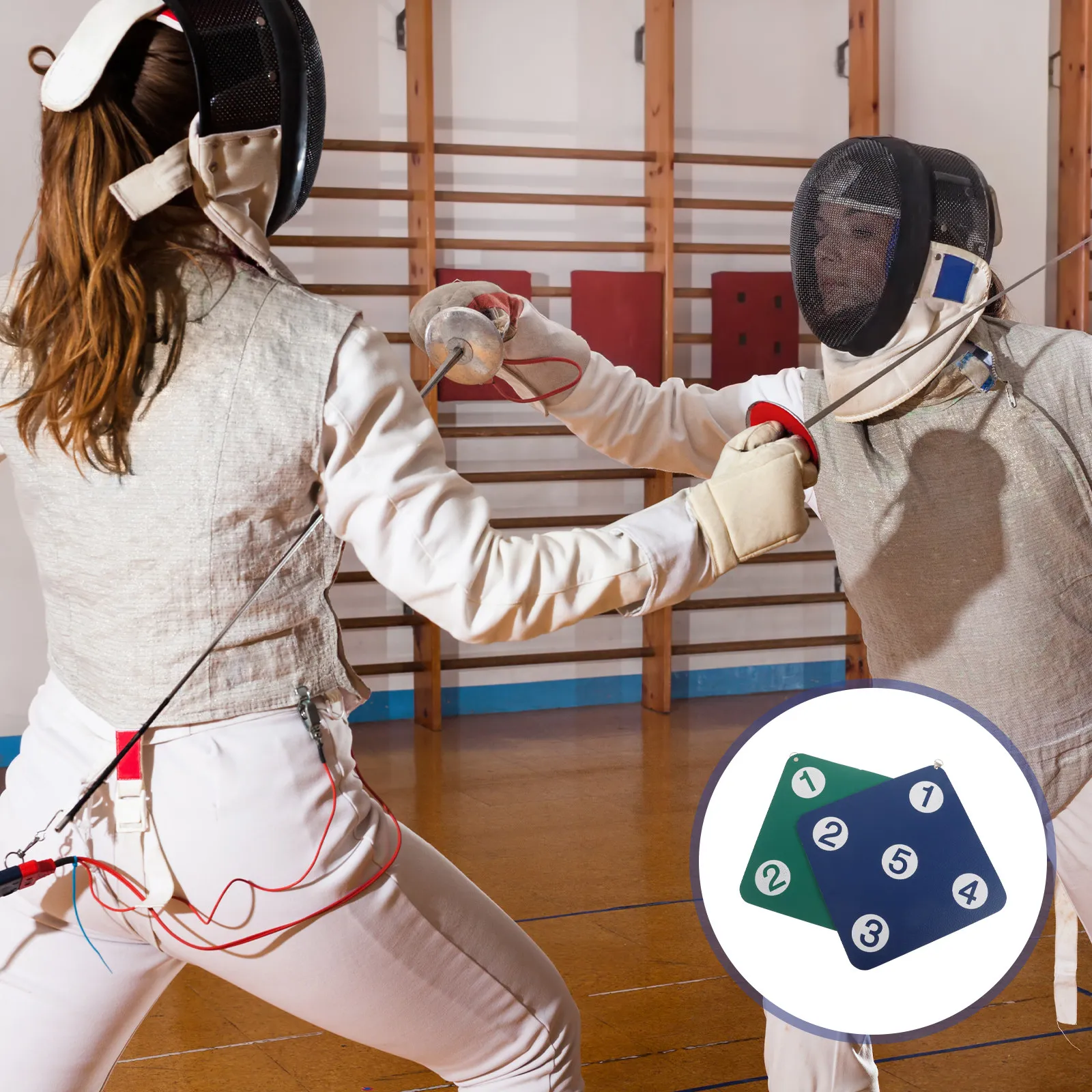 2 szt. Gumowe podkładki do ćwiczeń szermierczych, amortyzujące wstrząsy, odporne na przebicia, montowane na ścianie, o średnicy 13 cali, niebiesko-zielone, do szermierki w pomieszczeniach (szabre, szpada)