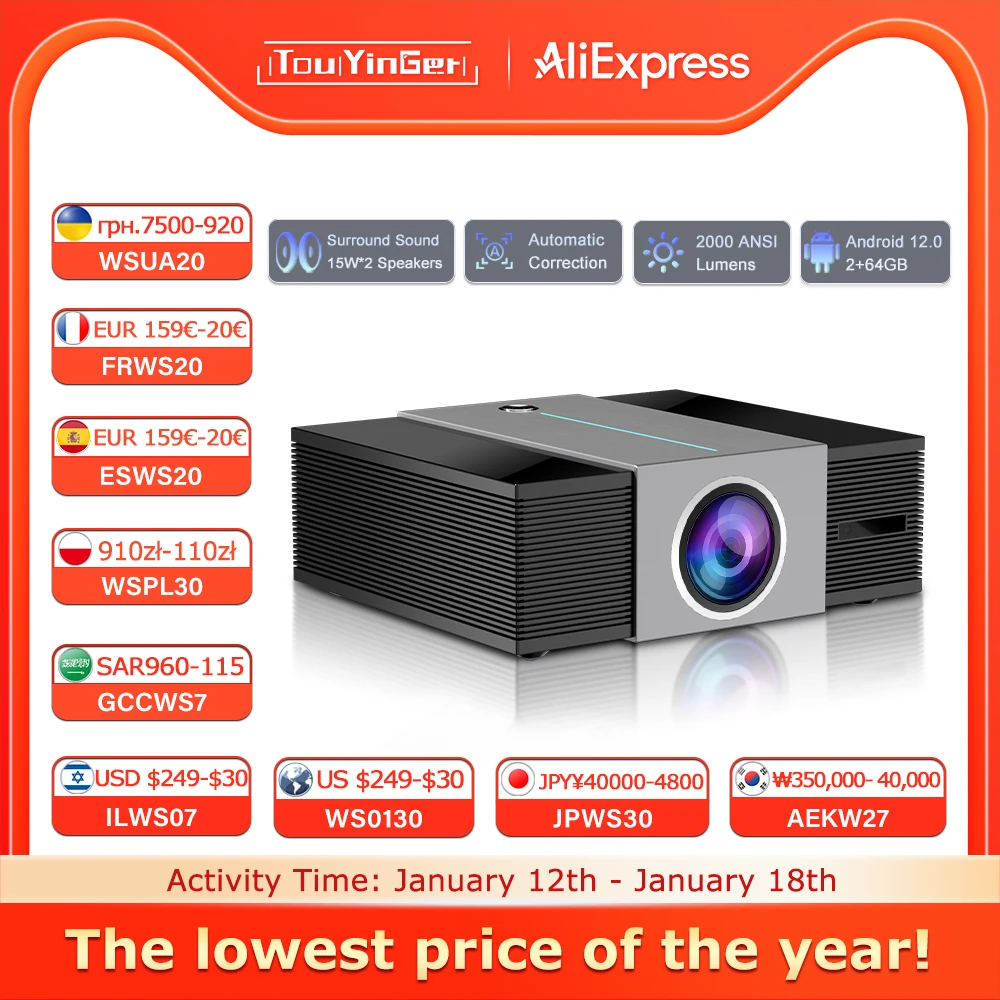 Nowy inteligentny projektor 4K Wifi6 290ANSI Allwinner BT5.0 1080P 1280*720P Kino domowe Projektor zewnętrzny Prezenty świąteczne Gorąca wyprzedaż 2026