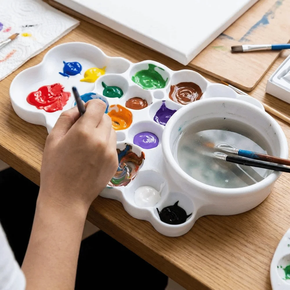 1 Zestaw 5-poziomowej ceramicznej palety do mieszania farb akwarelowych, wielofunkcyjne tacki do malowania dla dzieci, dorosłych, początkujących, projektów artystycznych