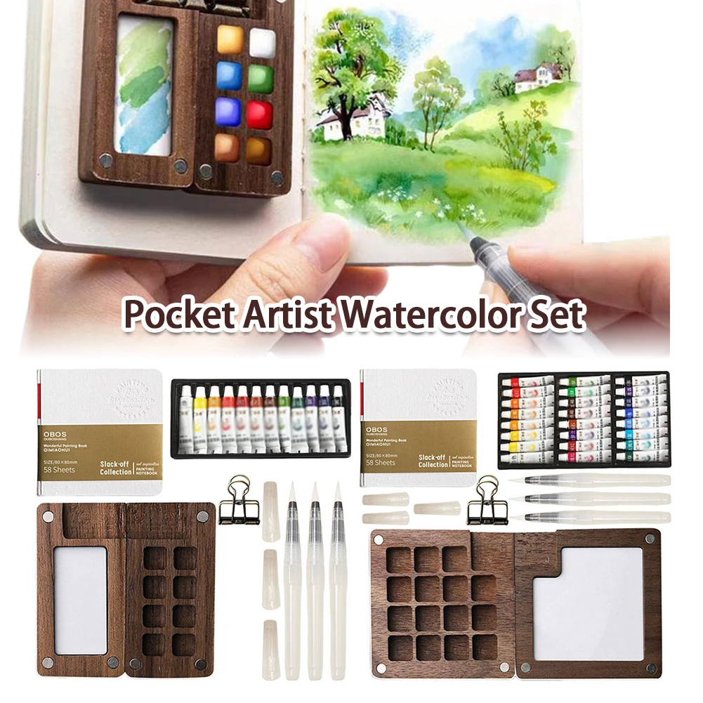 Mini Zestaw Farb Akwarelowych Przenośny Kieszonkowy Zestaw Artystyczny Podróżny z Klipsem Nowe Drewniane Pudełko z 8/15 Przegródkami Miniaturowy Zestaw Kolorów