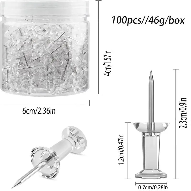 50/100 SZT. Płaskie Przezroczyste Pinezki z Motywem Miłości do Ściany, Pinezki do Tablicy Ogłoszeń, Pinezki do Ekspozycji w Ramkach, Pinezki do Tablic Korkowych
