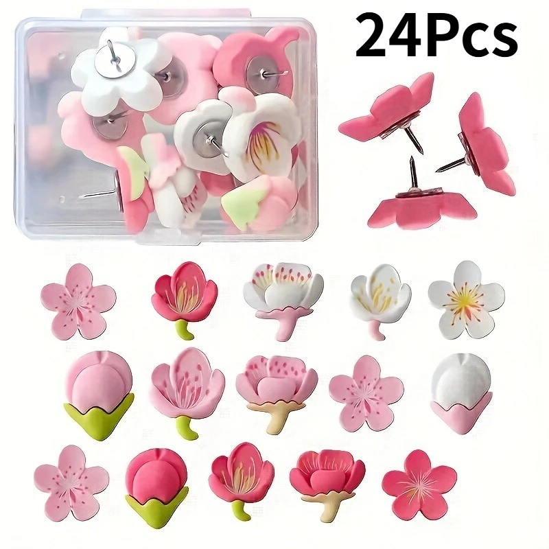 24 szt./zestaw pinezek do dekoracji domu, pinezki w kształcie kwiatów do samodzielnego tworzenia, do ekspozycji zdjęć, tablic ogłoszeń, map, artykułów biurowych