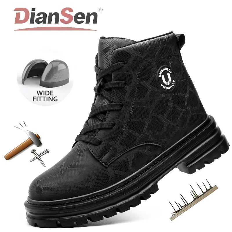 Wysokiej jakości męskie buty robocze typu high top, skórzane buty ochronne, antypoślizgowe, wytrzymałe, konstrukcyjne sneakersy, wygodne sznurowane botki.