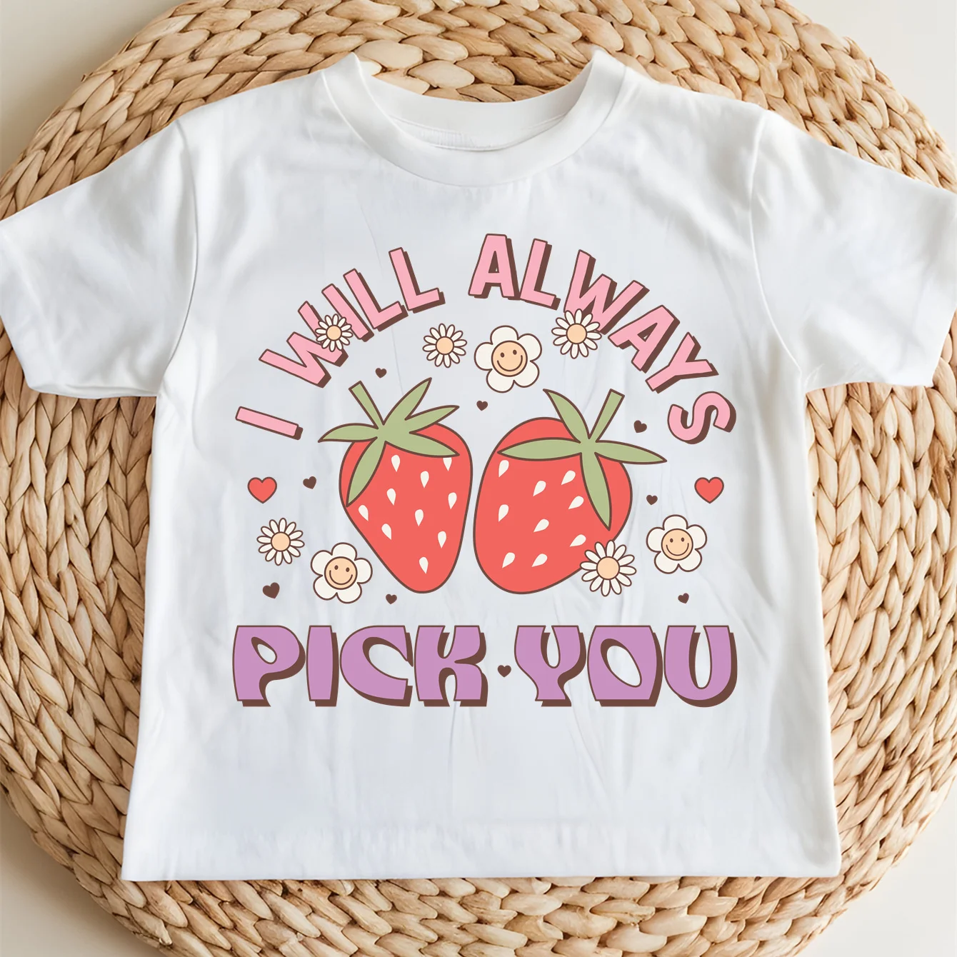 Koszulka dziecięca z krótkim rękawem, z okrągłym dekoltem, z nadrukiem róży i walentynkowym motywem, wykonana z czystej bawełny, wygodna, idealna na zewnątrz.