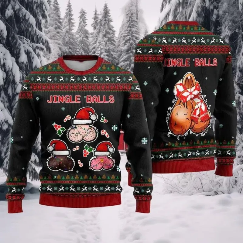 Śmieszny sweter świąteczny z nadrukiem kulek jingle balls, brzydki sweter bożonarodzeniowy, nowy, z długim rękawem, wygodny, ciepły, unisex, pulower, prezent świąteczny dla dorosłych i dzieci.