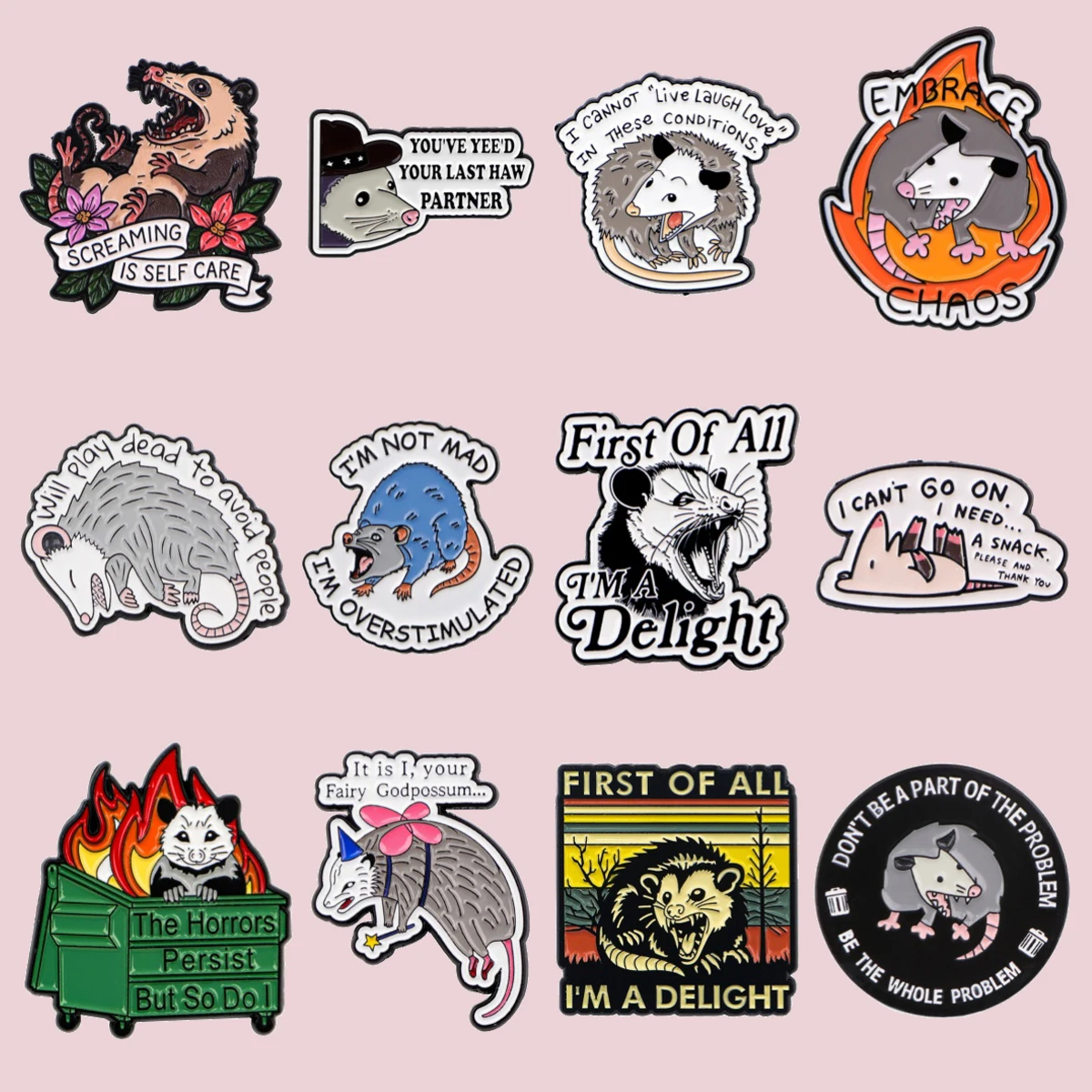Emaliowane broszki z oposami, śmieszne przypinki do klapy, odznaki na plecak, ozdoby do ubrań, modna biżuteria, akcesoria, prezent.