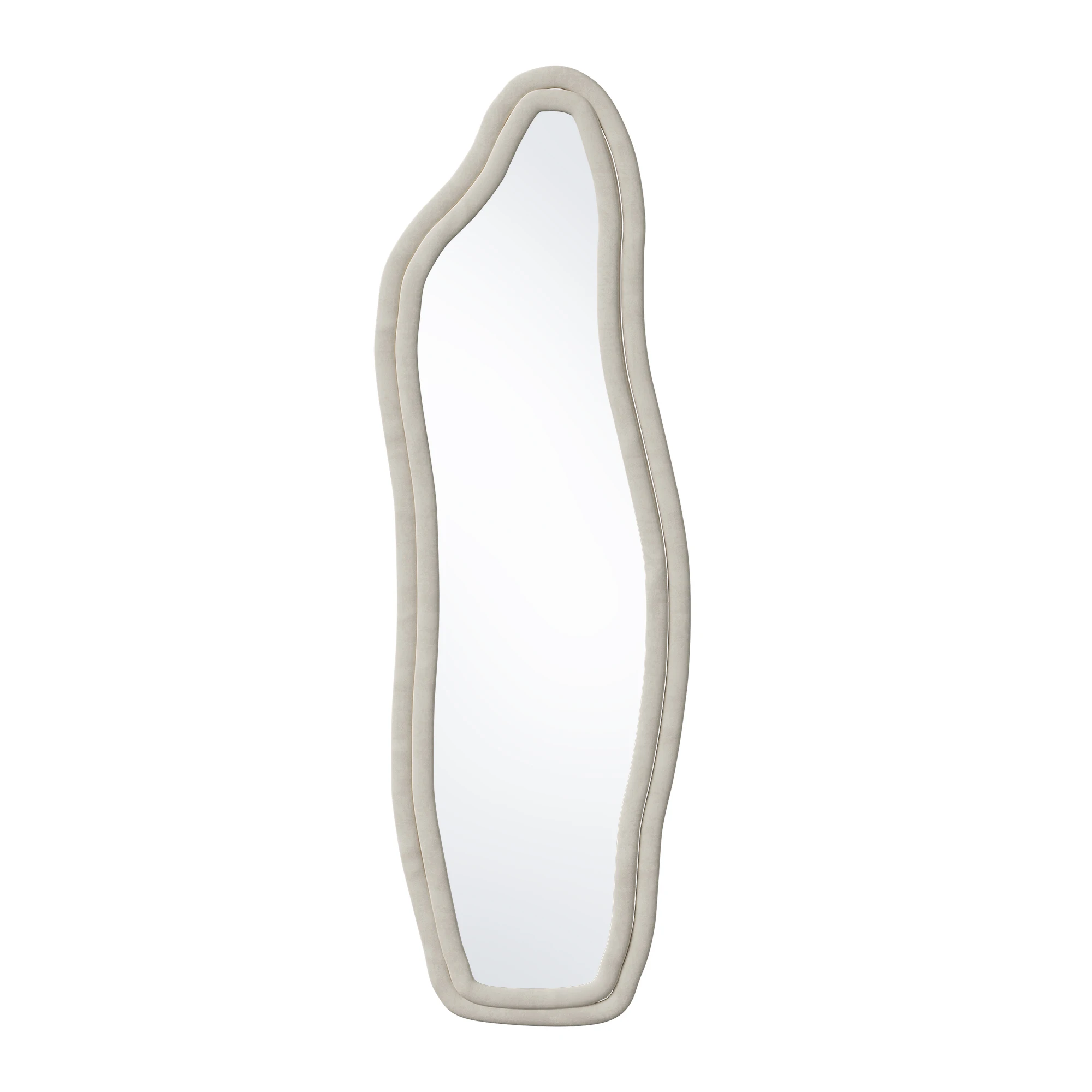 Pełnowymiarowe lustro, 160 x 50 cm, nieregularny, falisty kształt, lustro do sypialni, z możliwością nakładania lub zawieszania, ramka z aksamitu, białe.