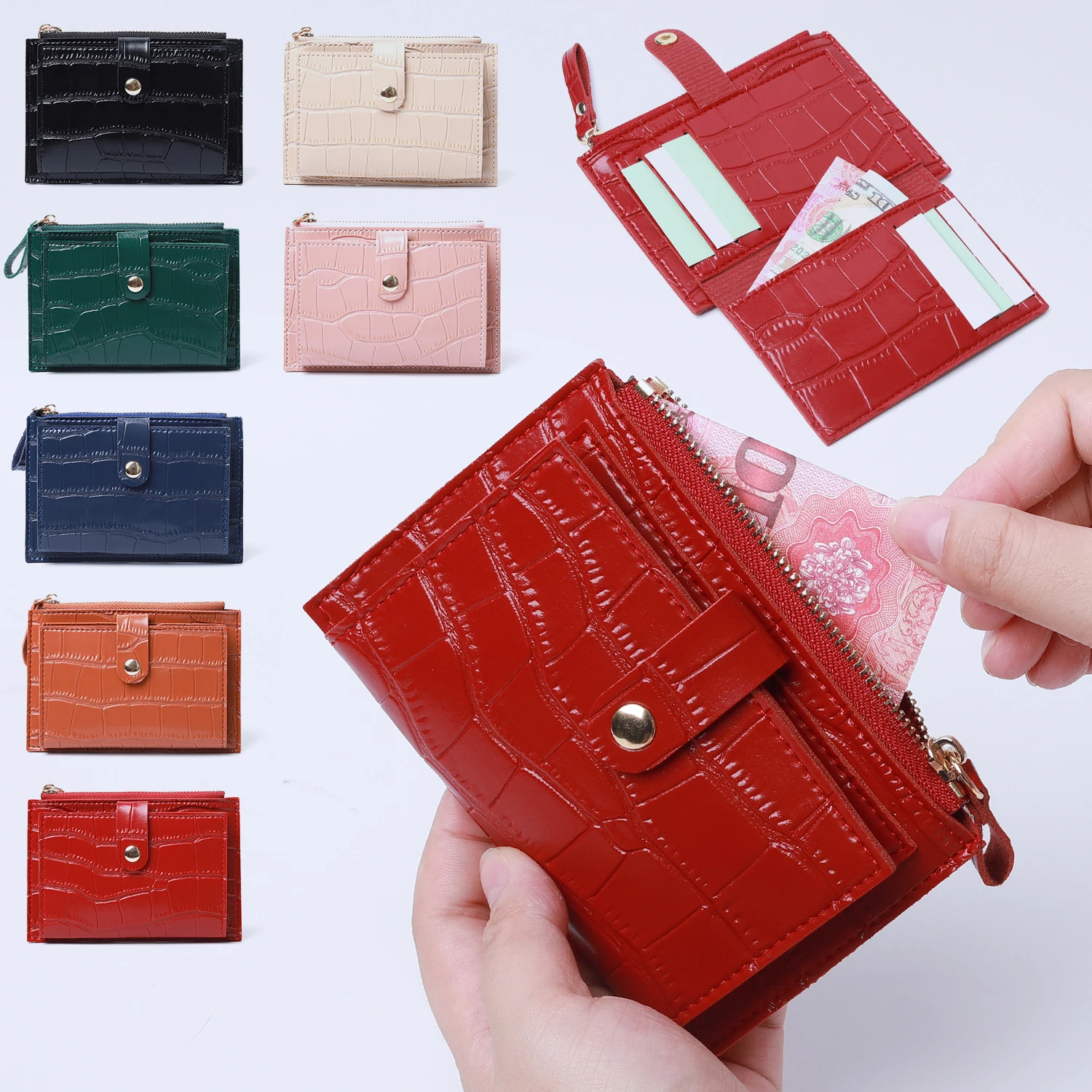 Ultracienki damski portfelik, modny portfel na karty kredytowe i identyfikacyjne, mini portfel damski z PU skóry na wiele kart, krótki portfel na monety