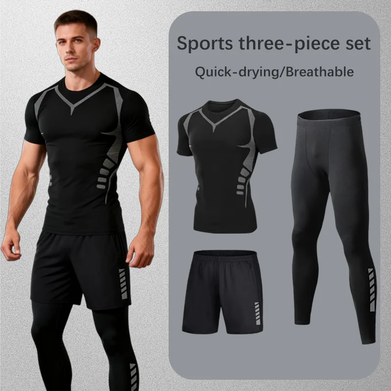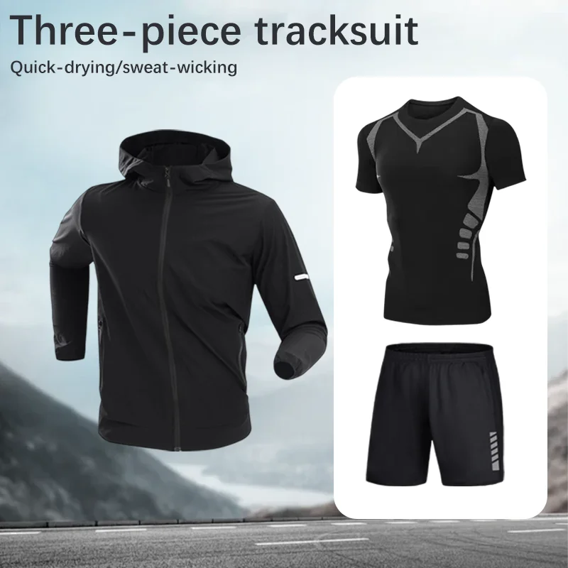 Męski szybkoschnący komplet sportowy z jedwabiu lodowego, z długim rękawem, kompresyjny, modny strój do biegania, fitnessu, treningu, boksu i joggingu.