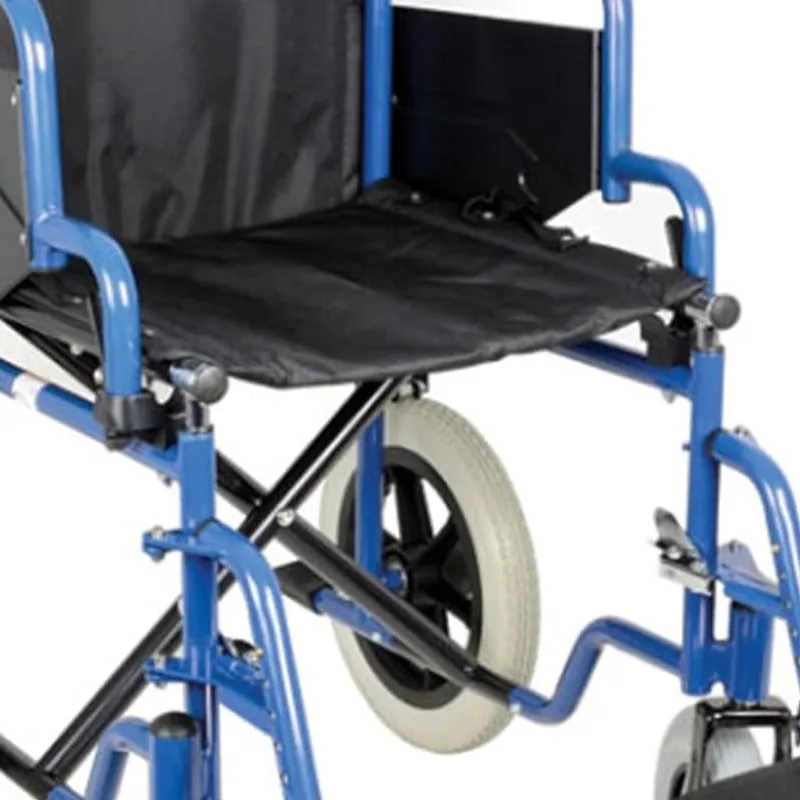 Lekki składany wózek inwalidzki dla niepełnosprawnych i seniorów - Urządzenie medyczne klasy I - Lekka stal z podłokietnikami, wysuwany i rozkładany, niebieski