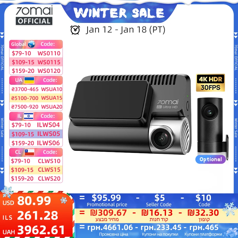 Kamera samochodowa 70mai A800SE 4K UHD z jakością obrazu filmowego, wbudowany GPS, ADAS, 70mai 4K A800SE z obsługą trybu parkowania 24H i kamery cofania.