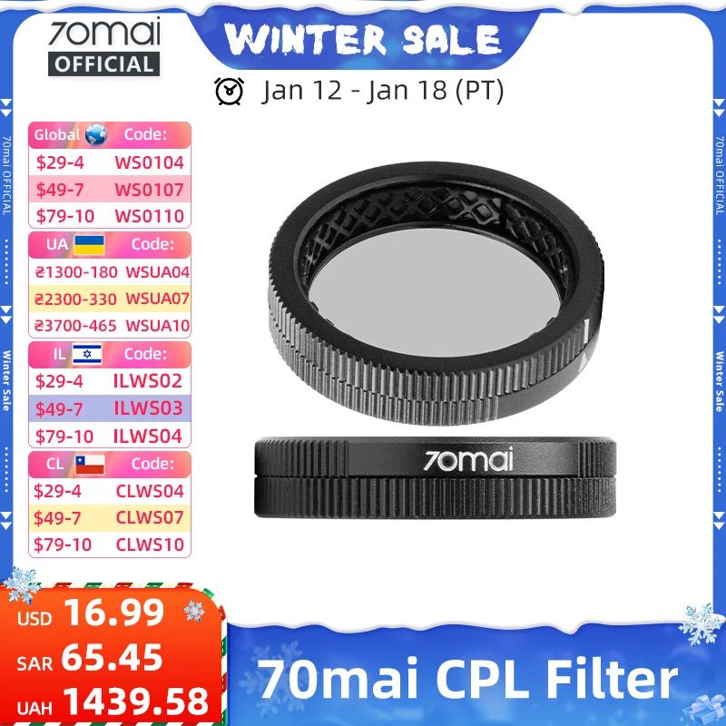 Oryginalny filtr CPL 70mai do kamery samochodowej 70mai 4K A800SE/A510/A800S/A500S/A200/Lite2 D10/Lite D08 z soczewką polaryzacyjną okrągłą