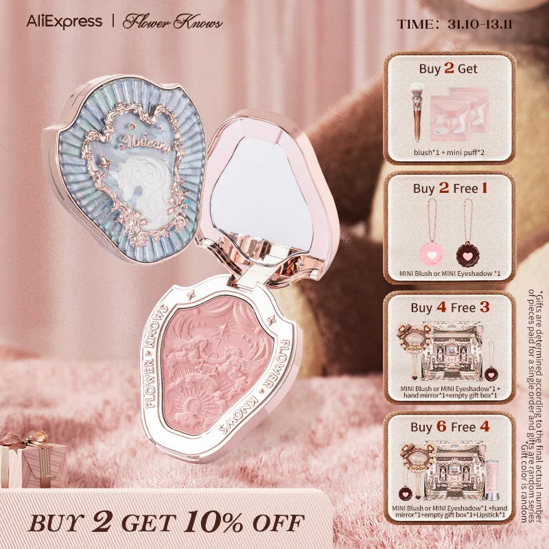 Flower Knows Unicorn Embossed Blush Naturalny róż do policzków Makijaż 6 kolorów 5 g