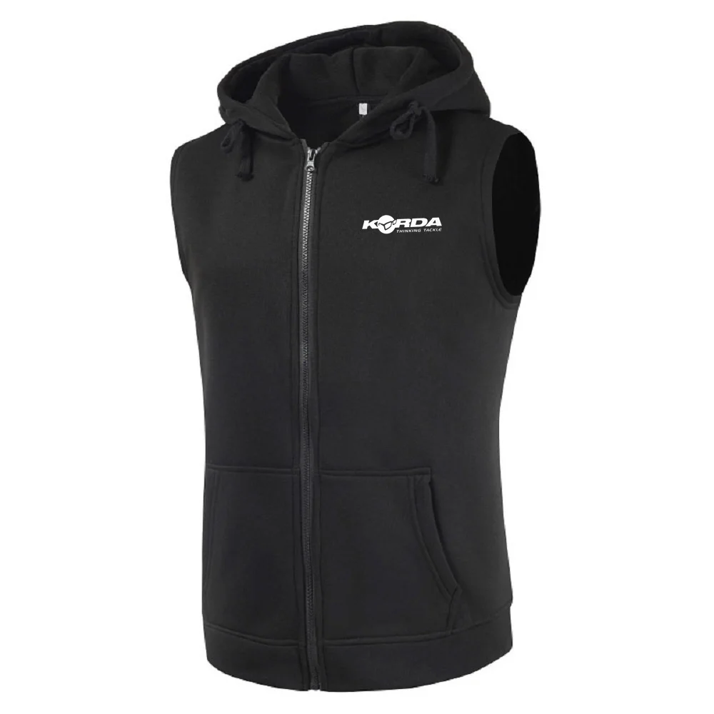 Mężczyźni Korda Inspired Tribute Bluza z kapturem bez rękawów Zapinana na zamek błyskawiczny Bluzy z kapturem Jednokolorowa bawełniana kamizelka Kamizelki Kieszenie Top