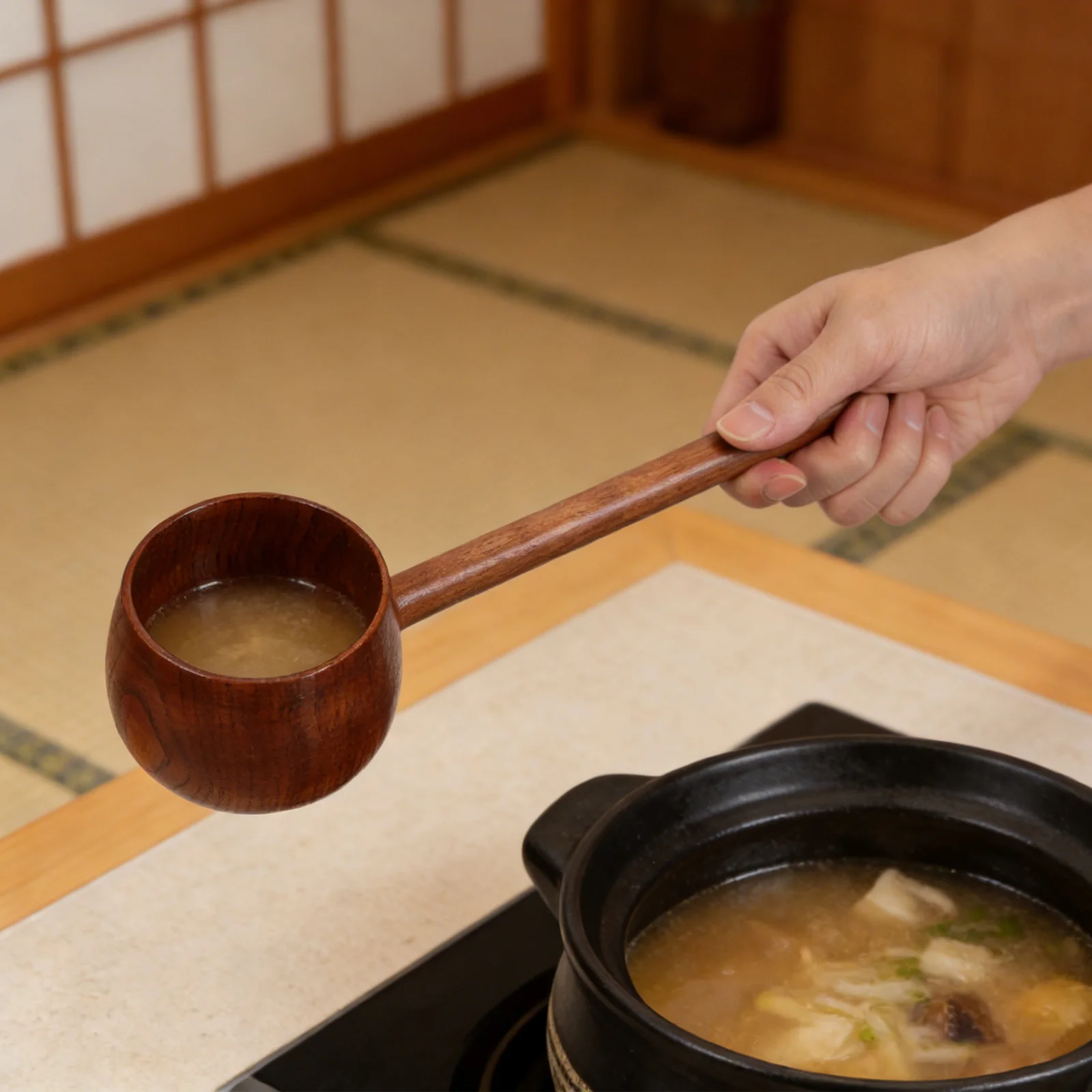Drewniana łyżka do wody z długim uchwytem, szpatułka kuchenna, łyżka do serwowania wina, herbaty, oleju, miodu, kompaktowa, lekka, ergonomiczna konstrukcja.