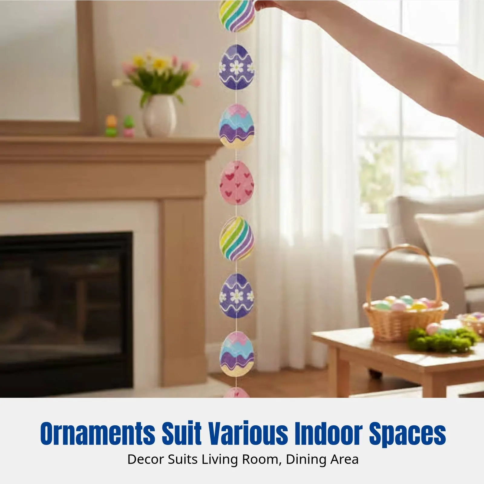 Dekoracja wielkanocna do zawieszenia, owalny baner, papierowa taśma szyta, dekoracja na imprezę, żywa ozdoba świąteczna do wnętrz.