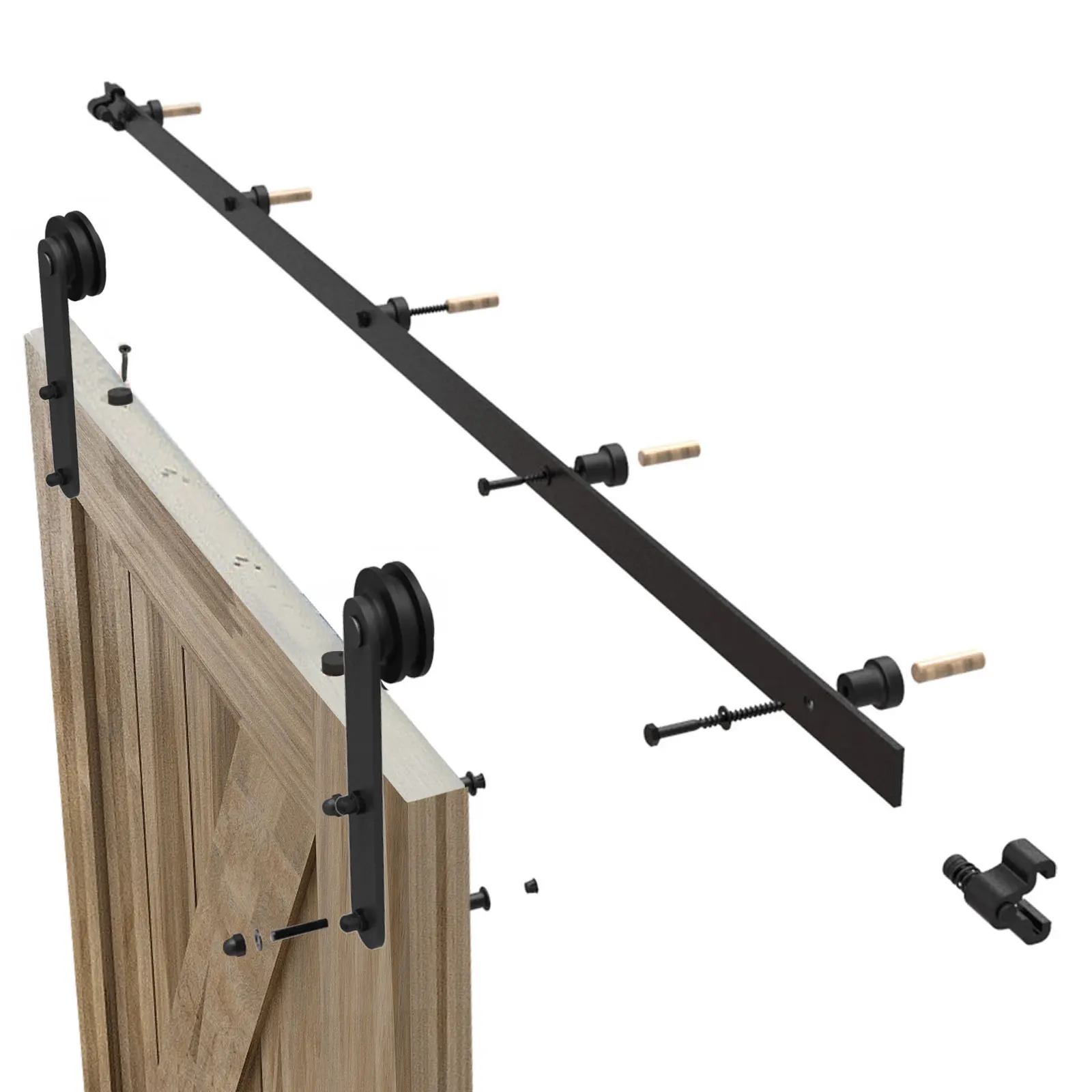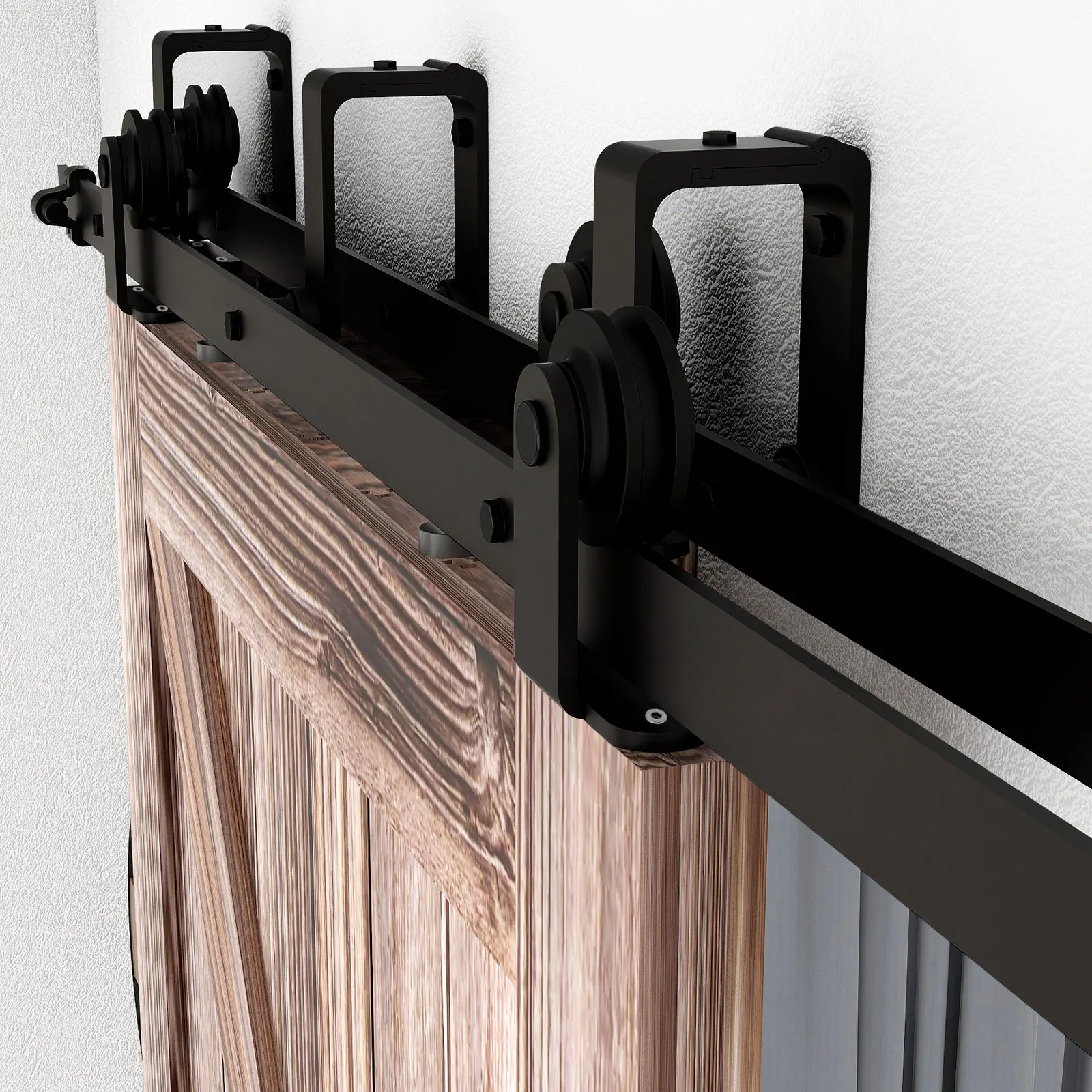 HACCER 4-9.6FT Szyna do drzwi przesuwnych do stodoły System wieszaków do drzwi stodoły ze stali węglowej Wytrzymała szyna rolkowa do pojedynczych drzwi