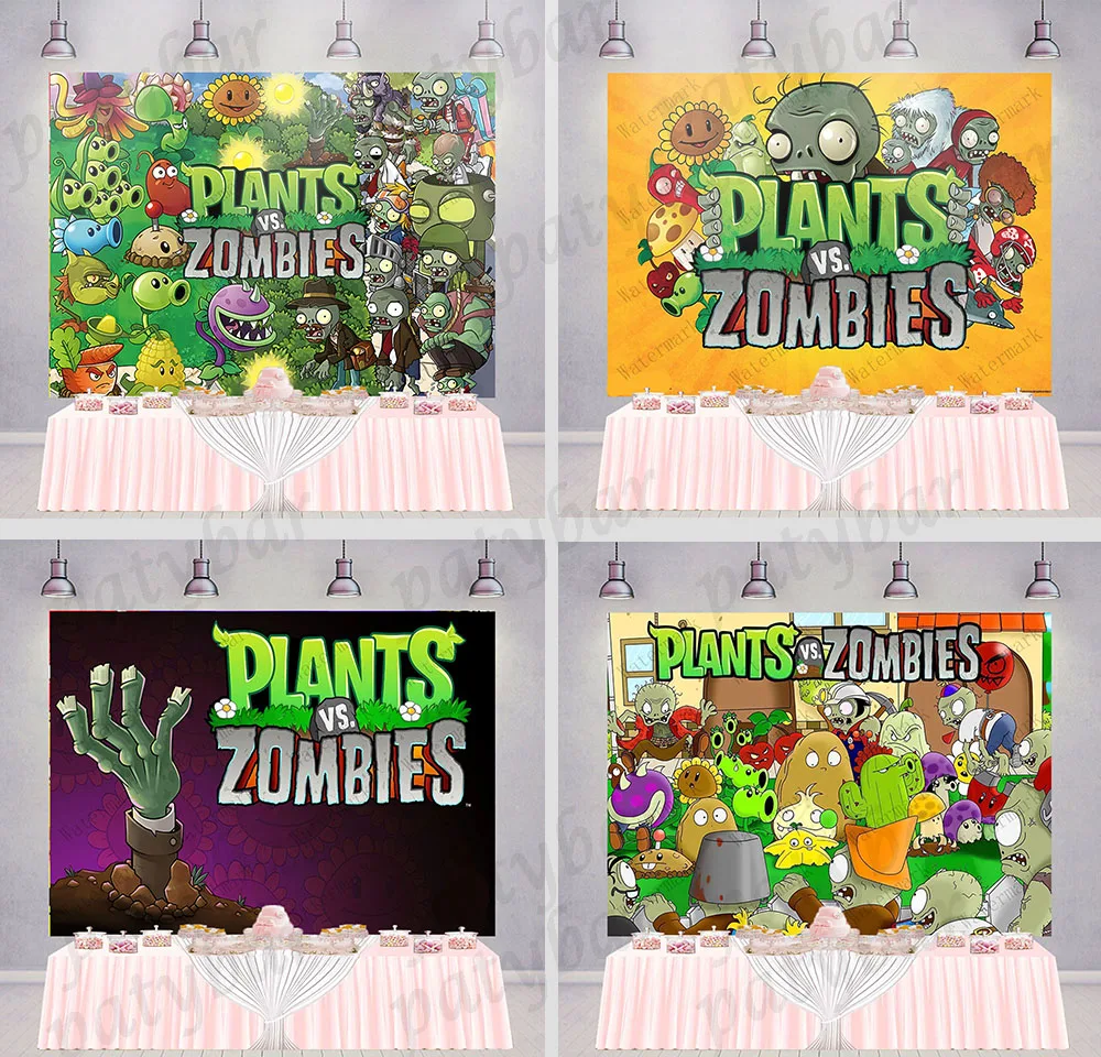 Rośliny kontra zombie słonecznik groszek strzelanka gra dziecko urodziny tło na przyjęcie niestandardowe chłopcy wystrój pokoju dziecięcego fotografia tło