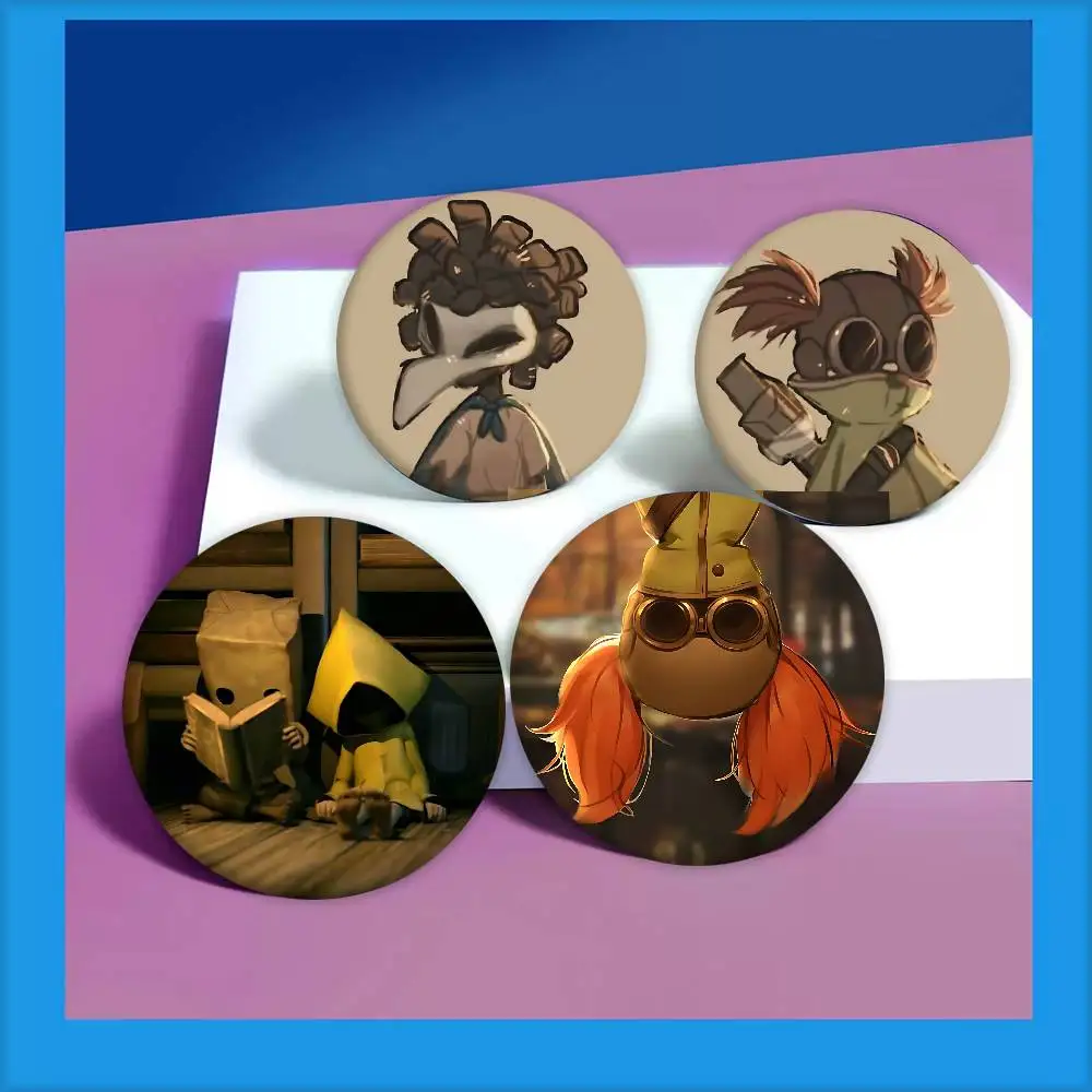 Anime L-Little Nightmares Odznaki Okrągłe Kreatywne Przypinki z Blachy Śmieszne Odznaki Metalowe Broszki do Toreb Ubrań Kapeluszy Dekoracje Biżuteria Prezenty