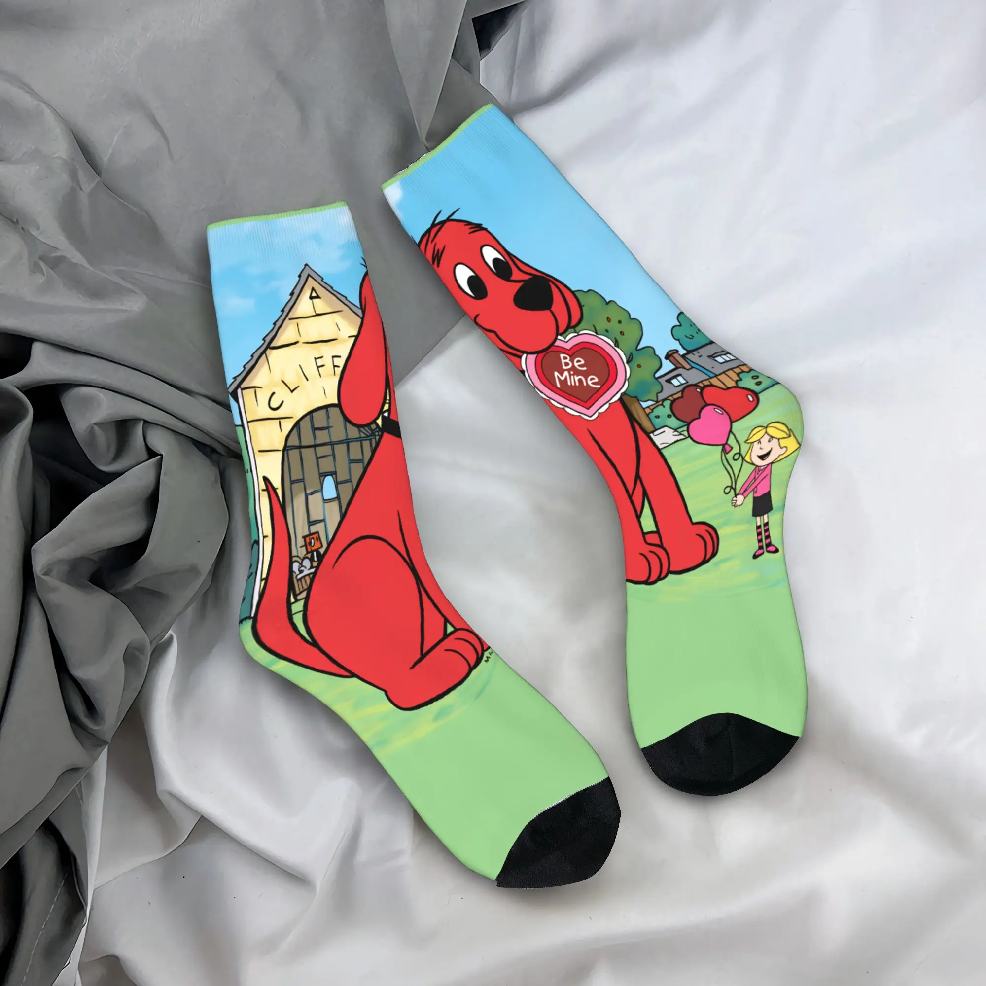 Skarpety z motywem kreskówkowego psa Clifford the Big Red Dog, codzienne skarpety męskie, miękkie, oddychające, skarpety do skateboardingu, zimowe, antypoślizgowe.