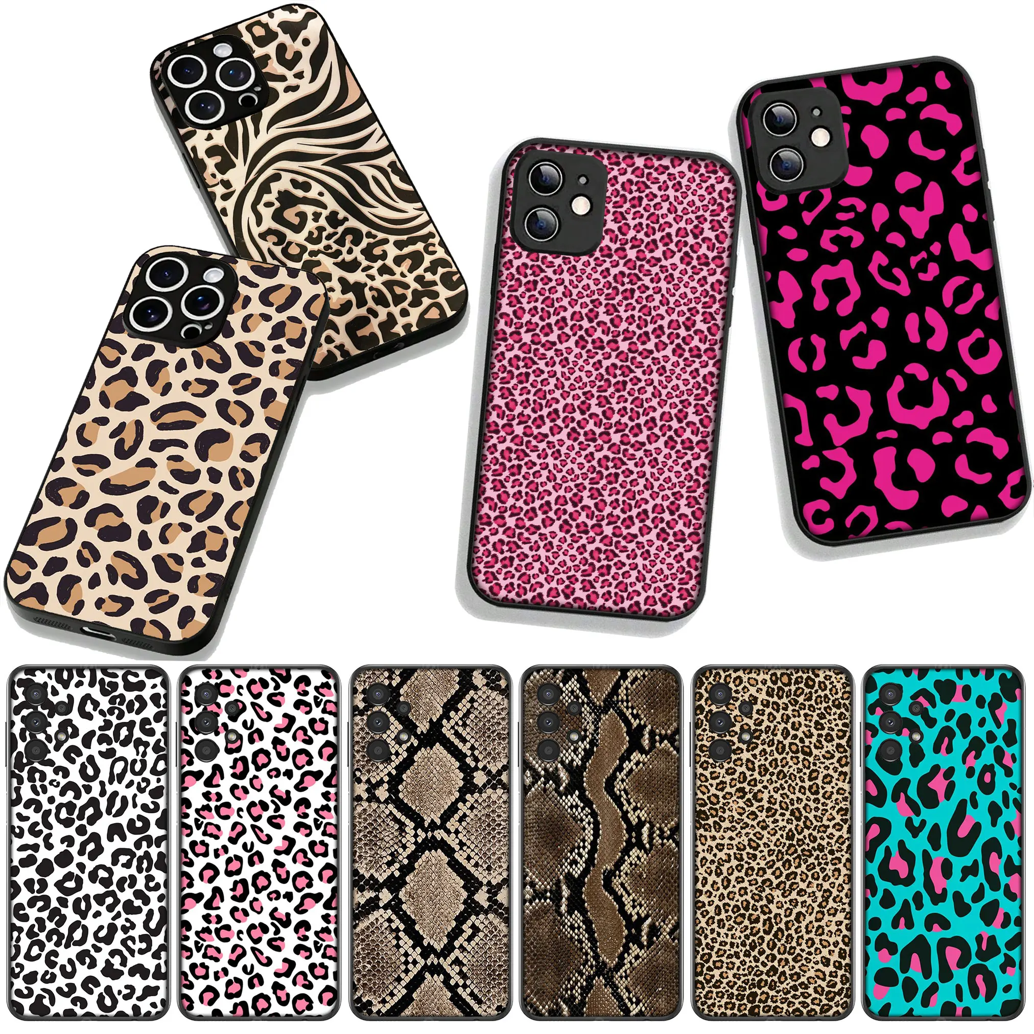 Etui na telefon z motywem krowy, lamparta i węża do Motorola Moto Edge 50 One 30 Fusion 40 neo Ultra Pro 20 Lite G85 G84 E15 E14