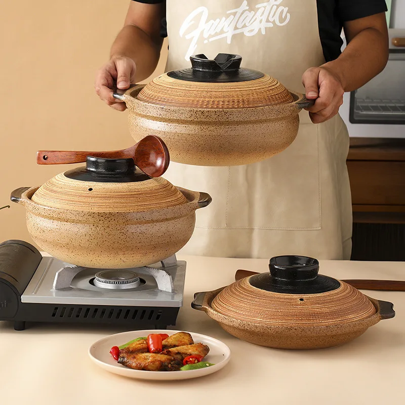 Panelas retrô japonesas, caçarola, guisado com tampa, caldeira de cerâmica para cozinhar sopa, potes de fundo grosso