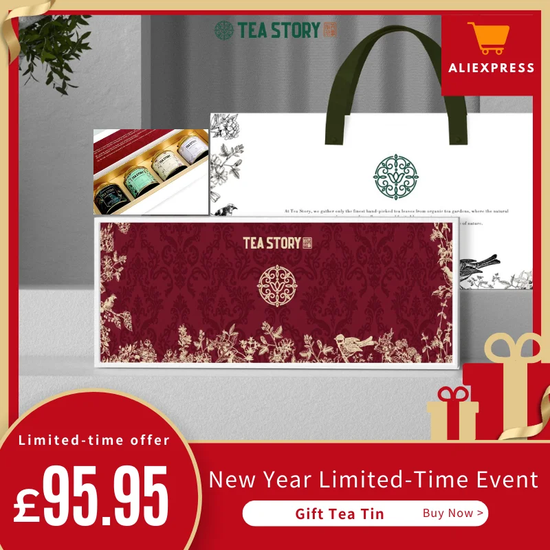 Conjunto de presente de chá de luxo Tea Story - 4x80g Latas de chá de folhas soltas - Chá premium para relaxamento, antioxidante - Presente para mulheres/mamãe