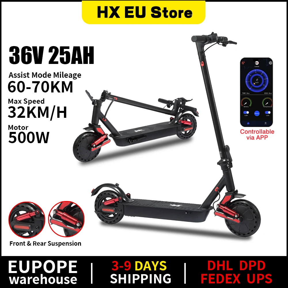 Hx d06 escooter 500w scooter elétrico 36v 25ah absorção de choque scooters elétricos dobrável e scooter 8.5 polegada app adulto inteligente