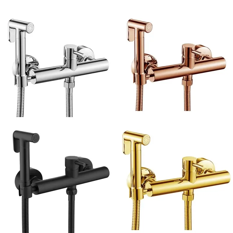Conjunto de pulverizador de bidê para banheiro em latão, torneira de bidê de dupla função, pulverizador de água quente e fria, torneira de chuveiro de alta pressão.