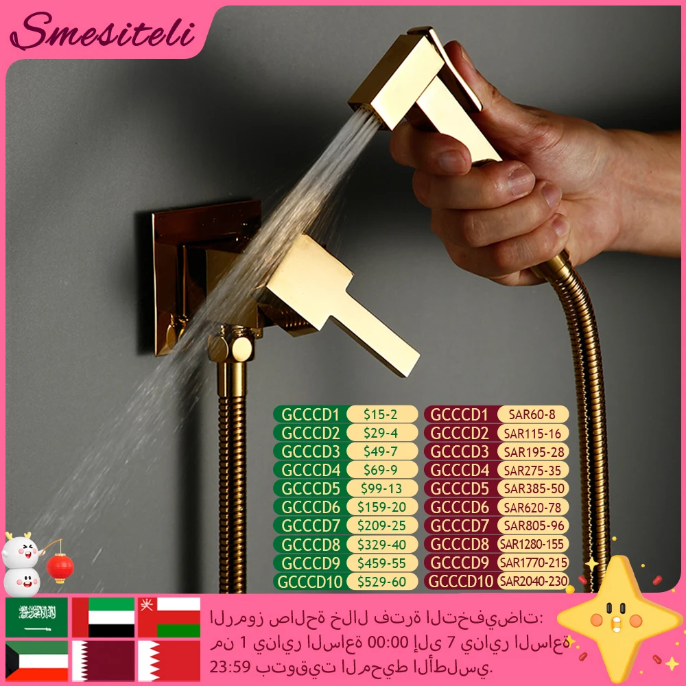 Conjunto de chuveiro de latão com descarga, bidê pressurizado, pulverizador de ouro escovado, banheiro, varanda, montado na parede, bidê portátil de auto-limpeza