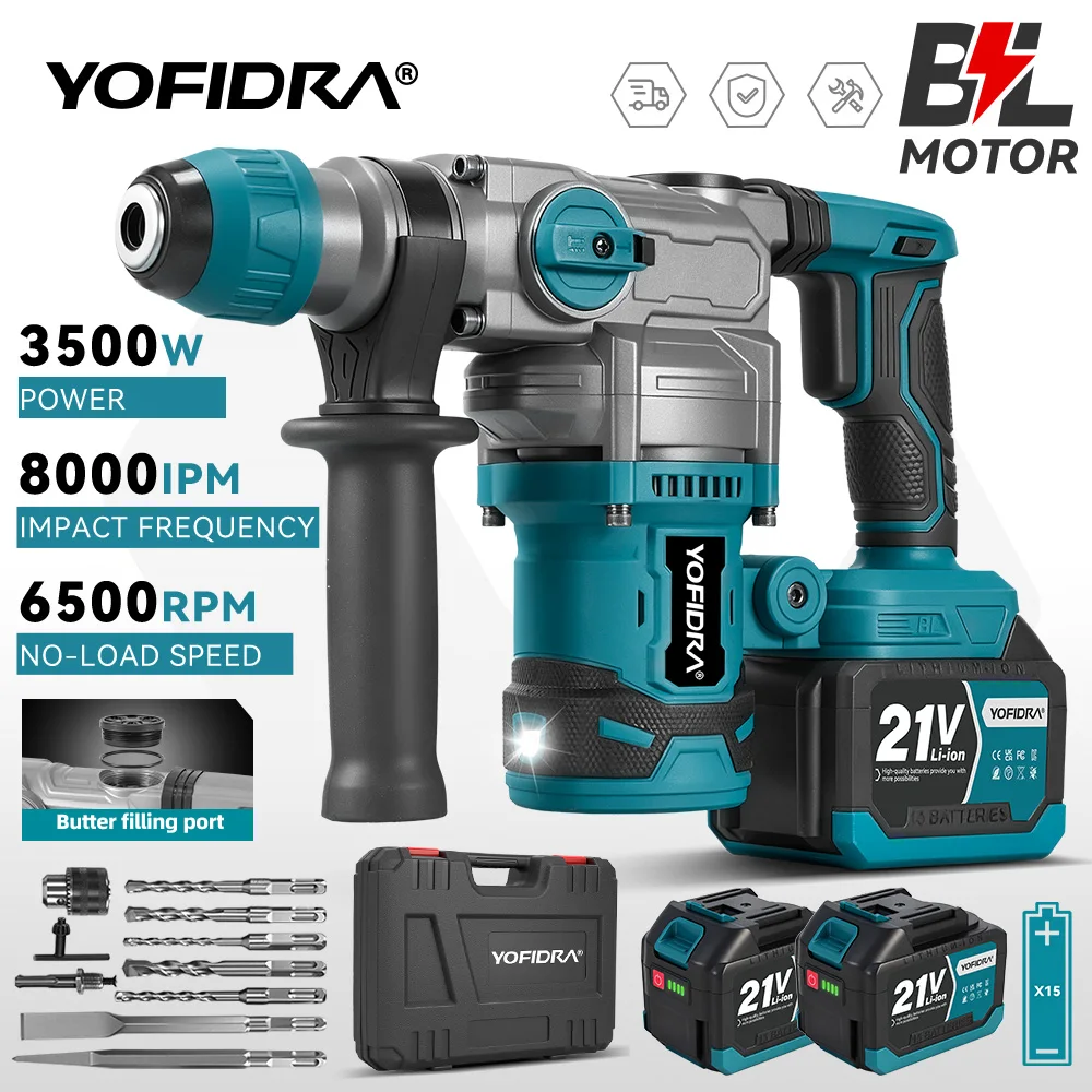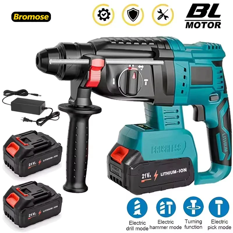 Martelo elétrico de bateria de lítio e picareta, broca de impacto de dupla finalidade, carregamento de concreto de alta potência sem fio de dupla finalidade resistente