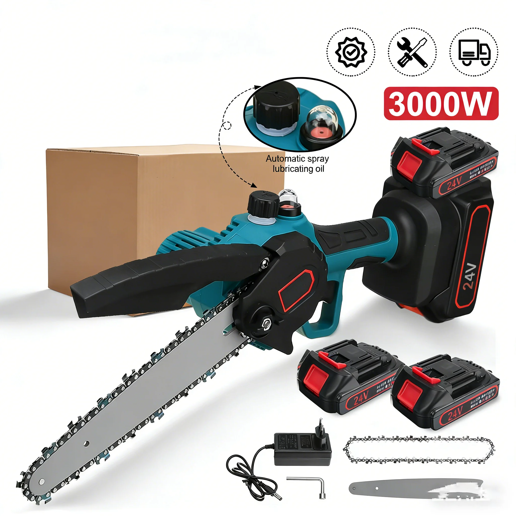 Serra Elétrica Mini de 3000W 8 Polegadas 288V com Lubrificador, Bateria de Lítio, Ferramentas de Corte para Jardinagem