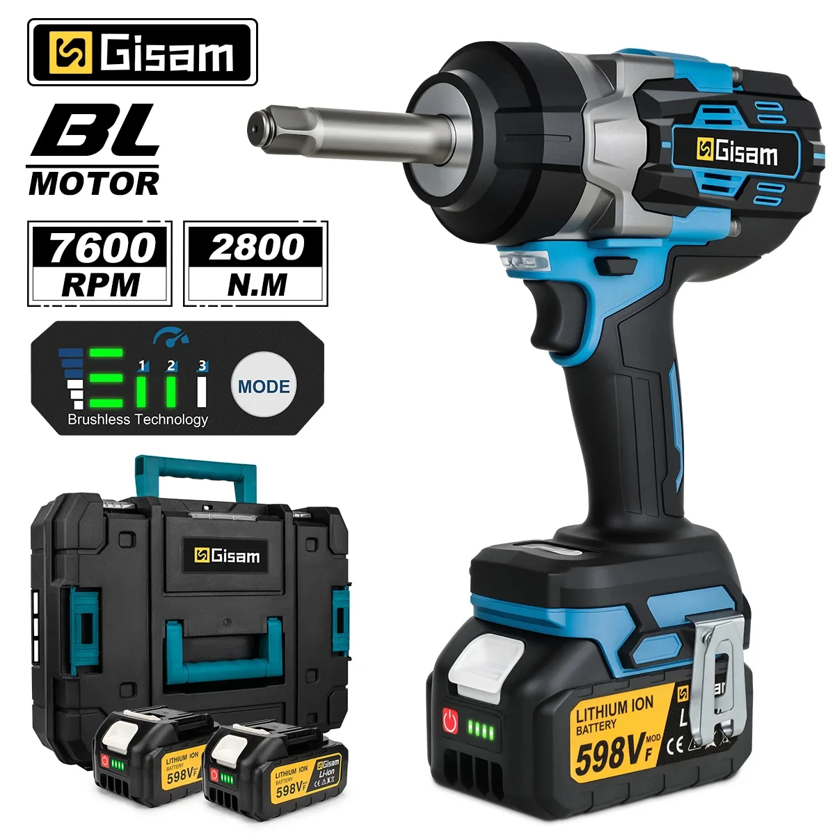 Gismo 1200nm chave de impacto elétrica sem escova recarregável 1/2 "pneus carro ferramentas elétricas sem fio para makita 18v bateria pino