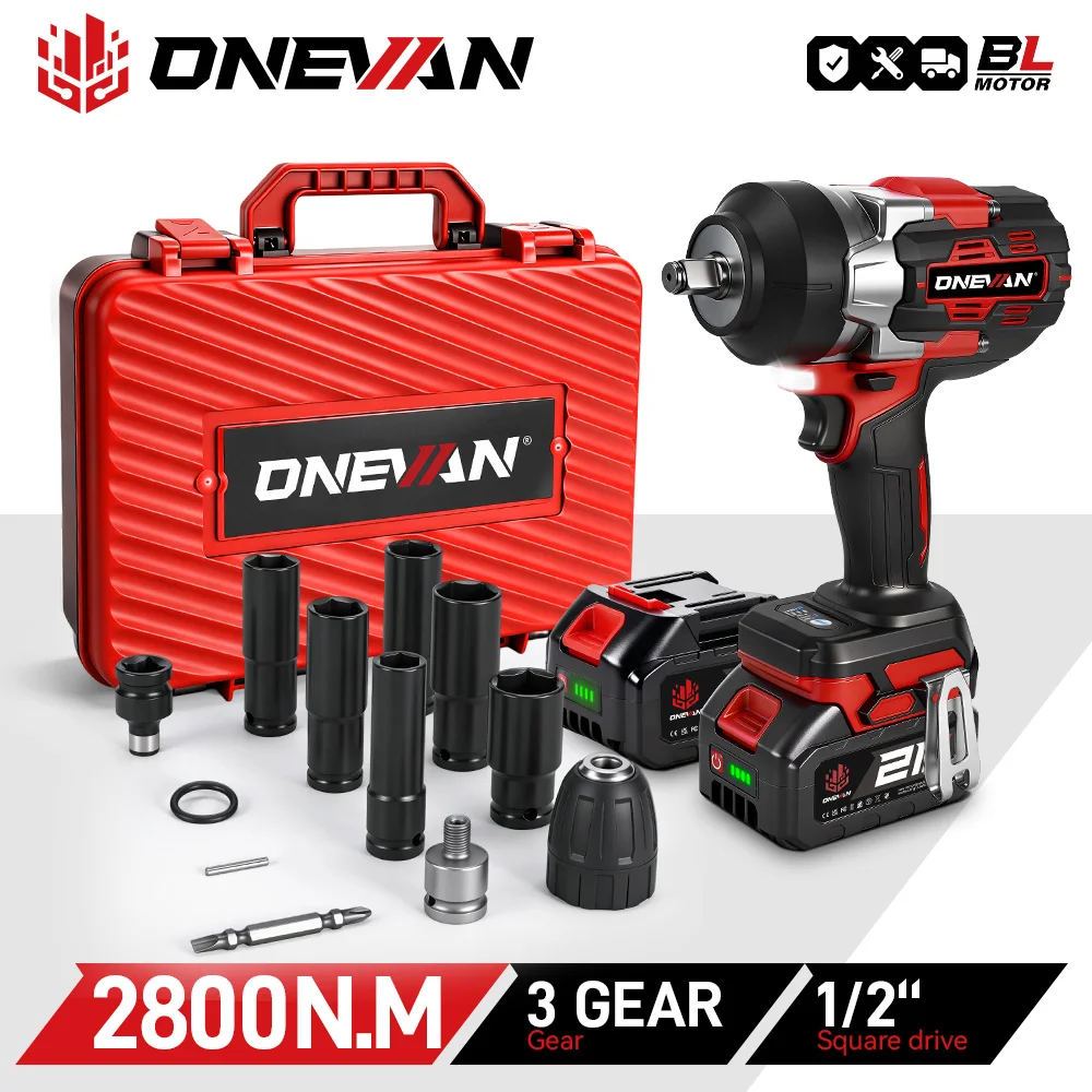Onevan 2800n.m chave de impacto elétrica sem escova 1/2 Polegada chave de torque sem fio broca ferramenta elétrica para makita 18v bateria pino