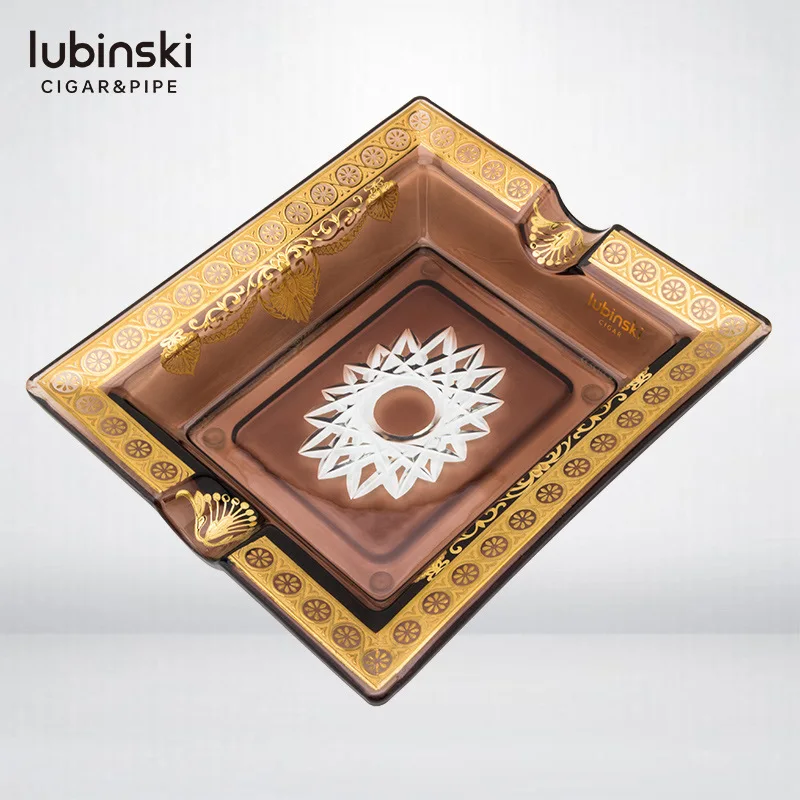 Cinzeiro de charutos LUBINSKI em material esmaltado com dupla ranhura para fumaça, adesivo de flor dourada, padrão esculpido à mão, artesanato criativo.
