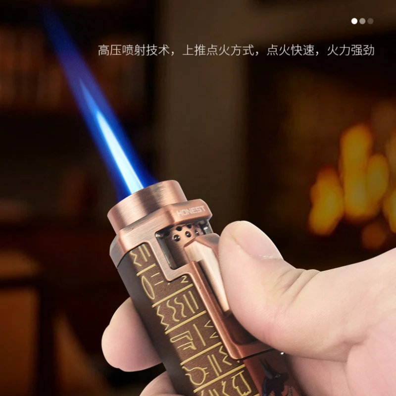 JOBON Isqueiro de charuto com quatro chamas, design de equipamento de charuto, trava de segurança, janela de gás transparente, chama forte à prova de vento