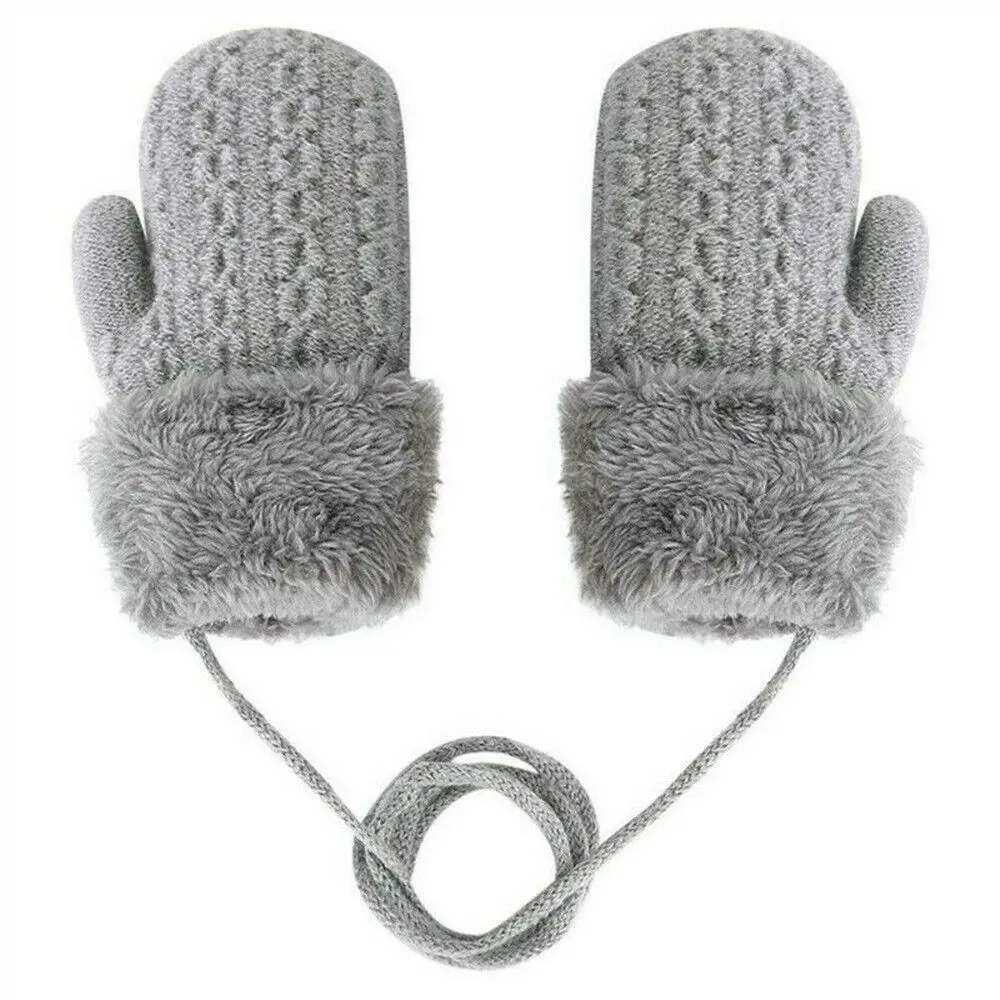 Luvas de malha fofas dos desenhos animados para crianças, peles artificiais, pescoço pendurado, luvas grossas quentes para bebês meninos e meninas, 1 a 4 anos, novo quente