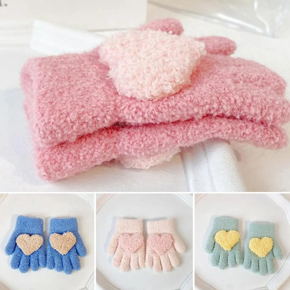 Luvas de Inverno Quentes e Fofas para Crianças, Luvas à Prova de Vento em Cores Doces, Luvas Tricotadas Elásticas para Meninos e Meninas