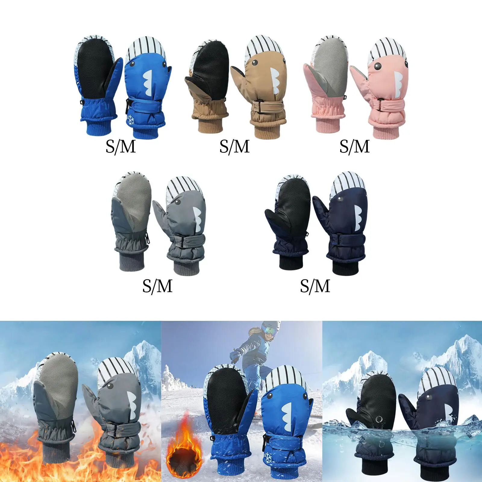 Novas crianças à prova dwindproof água luvas de equitação à prova de vento silicone anti deslizamento luvas quentes dedo cheio elástico pulsos luvas de inverno ao ar livre