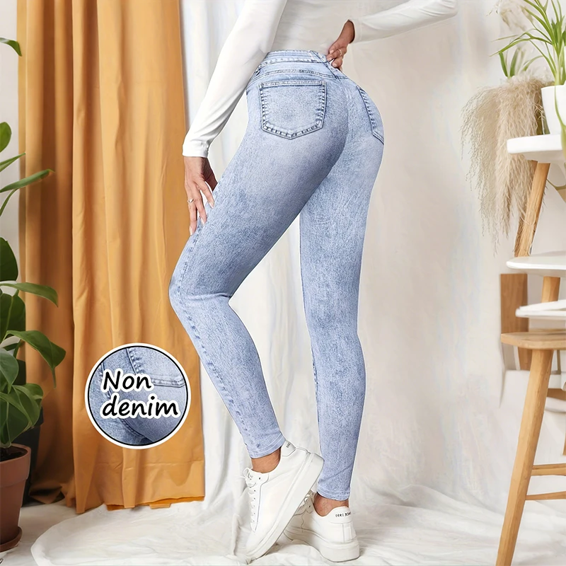Calças de Yoga Femininas de Cintura Alta, Sem Denim, com Efeito Levanta Bumbum, Modernas, Sensuais, Casuais, Leggings de Cor Sólida, Alta Elasticidade e Conforto.