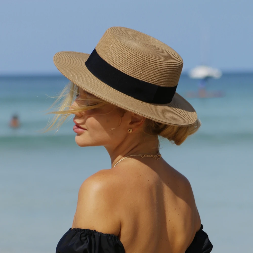 Chapéu de Sol Unissex com Topo Plano - Chapéu de Palha Dobrável para Homens e Mulheres, Ideal para Viagens de Verão e Praia com Aba Larga e Proteção UV