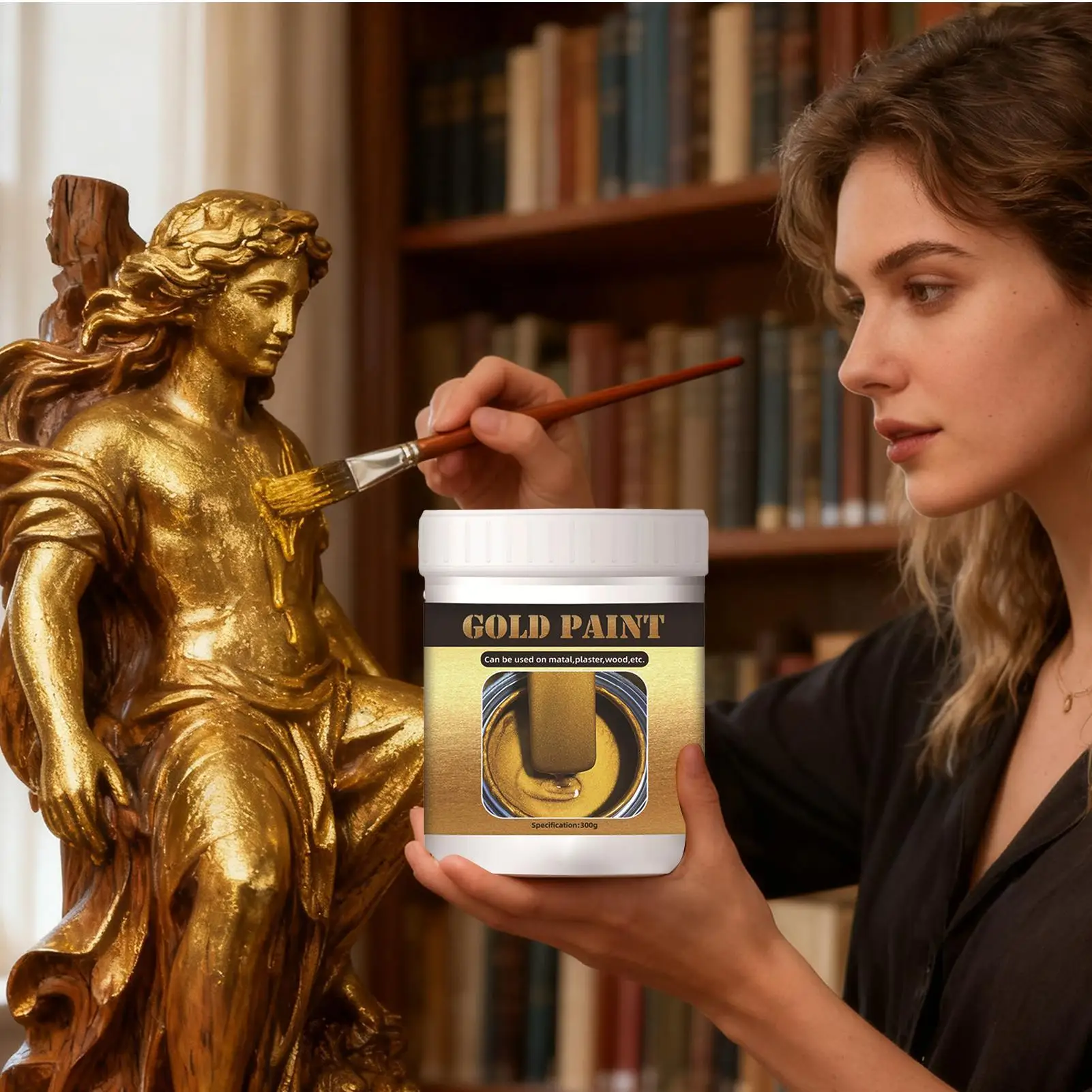 Pintura artesanal dourada 300g, tinta metálica líquida à base de água para madeira, metal, tecido e móveis, suprimentos de pintura diy, trilhos de ferro