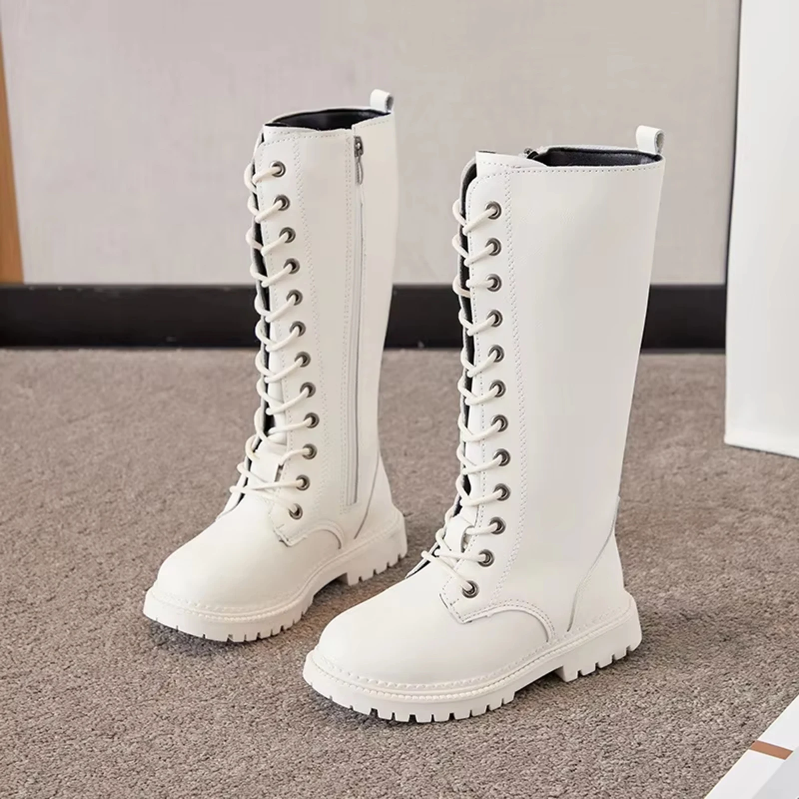 Botas de tornozelo curtas femininas com nós traseiros, sola macia, botas de couro princesa, algodão quente, fecho lateral, crianças, novo, 2024