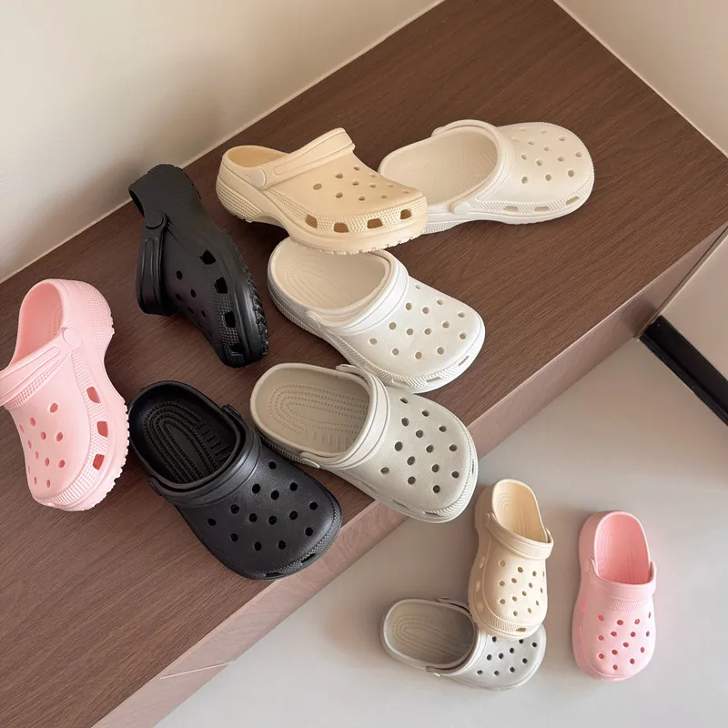 Sapatos de jardim de uma só peça, podem ser usados em todas as estações, sapatos versáteis de EVA com sola grossa e brilhante, adequados para a praia 1214