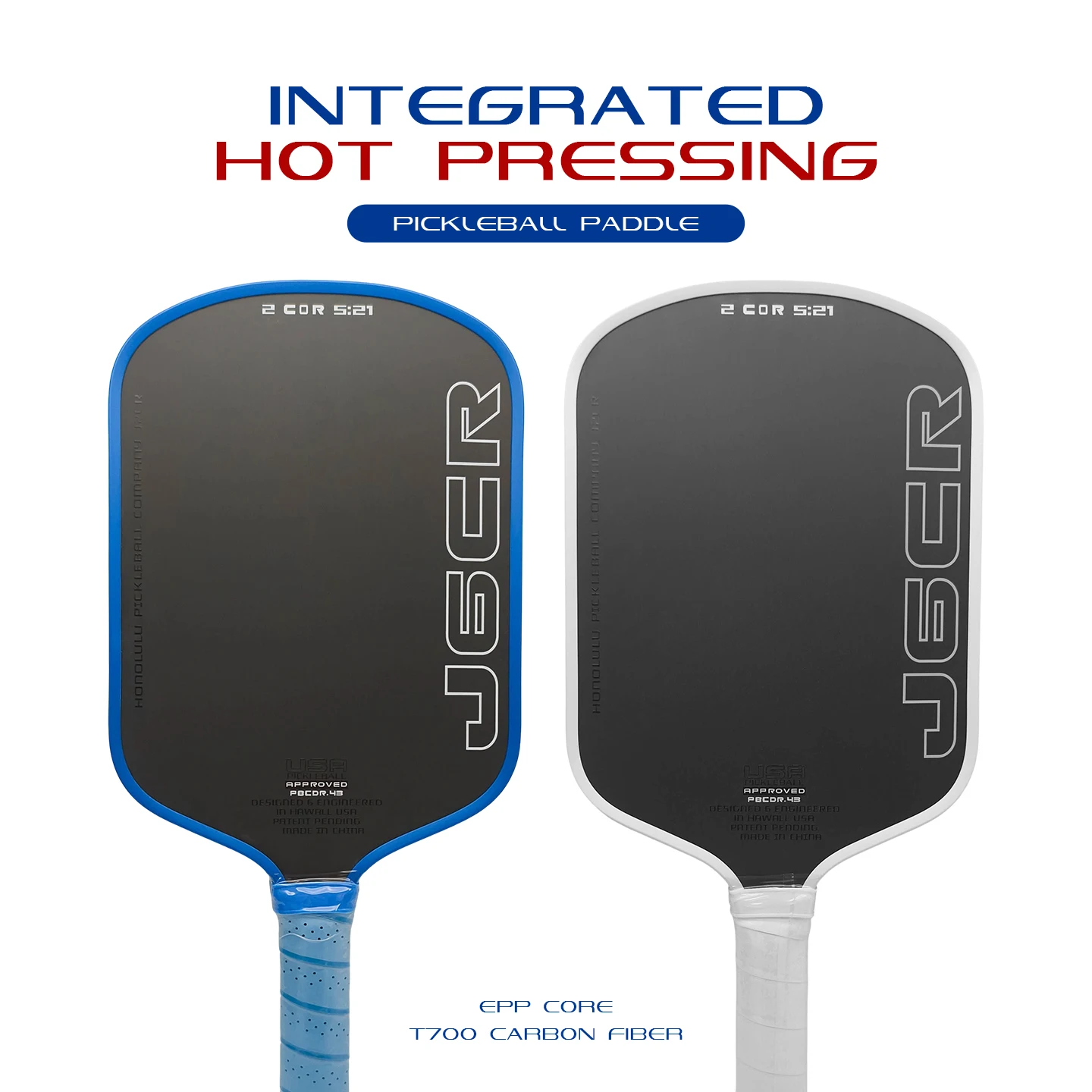 Raquete de Pickleball Profissional J6CR em Fibra de Carbono CFC Termoformada a Quente com Núcleo de Espuma de 5ª Geração Power Rebound, Aprovada pela USAPA