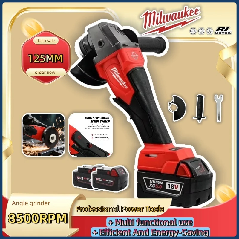 Milwaukee 125mm moedor de ângulo sem fio máquina de corte de polimento moedor interruptor de pá sem bloqueio ferramentas elétricas de alta potência 18v20v
