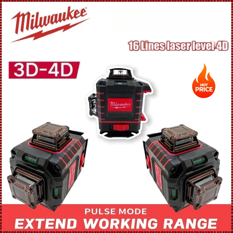 Milwaukee 16 Linhas 360 ° Níveis a Laser Verde Autonivelantes, Ferramentas de Nível a Laser de 4 Lados, Nível a Laser Vertical 4.2V 3-4D, Nível a Laser Cruzado