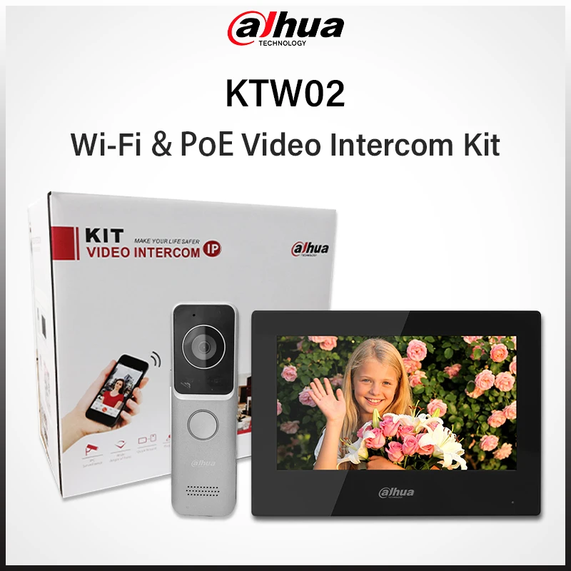 Kit de intercomunicação por vídeo Dahua Original 2MP Wifi PoE com Doobell VTO2311R-WP Monitor interno de 7” VTH2621G-WP International Vision KTW02
