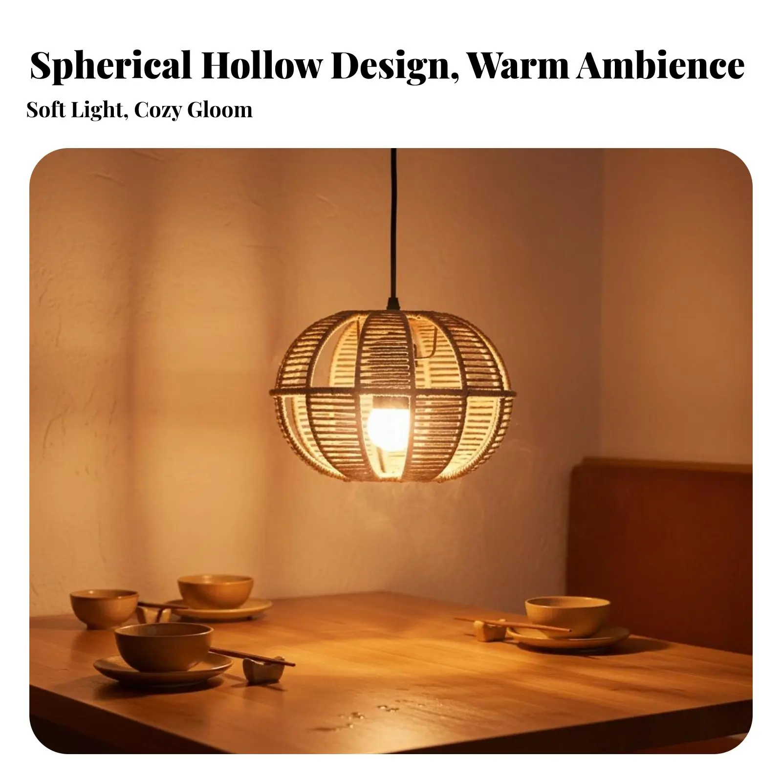 Luminária Pendente de Design em Rattan, Material Natural, Abajur de Corda de Papel Trançada, Globo de Luz com Design Vazado Boho