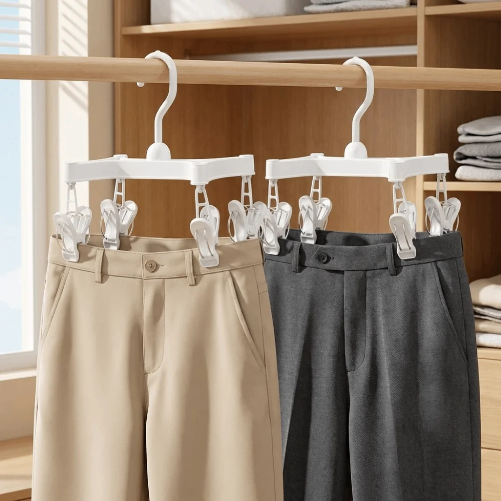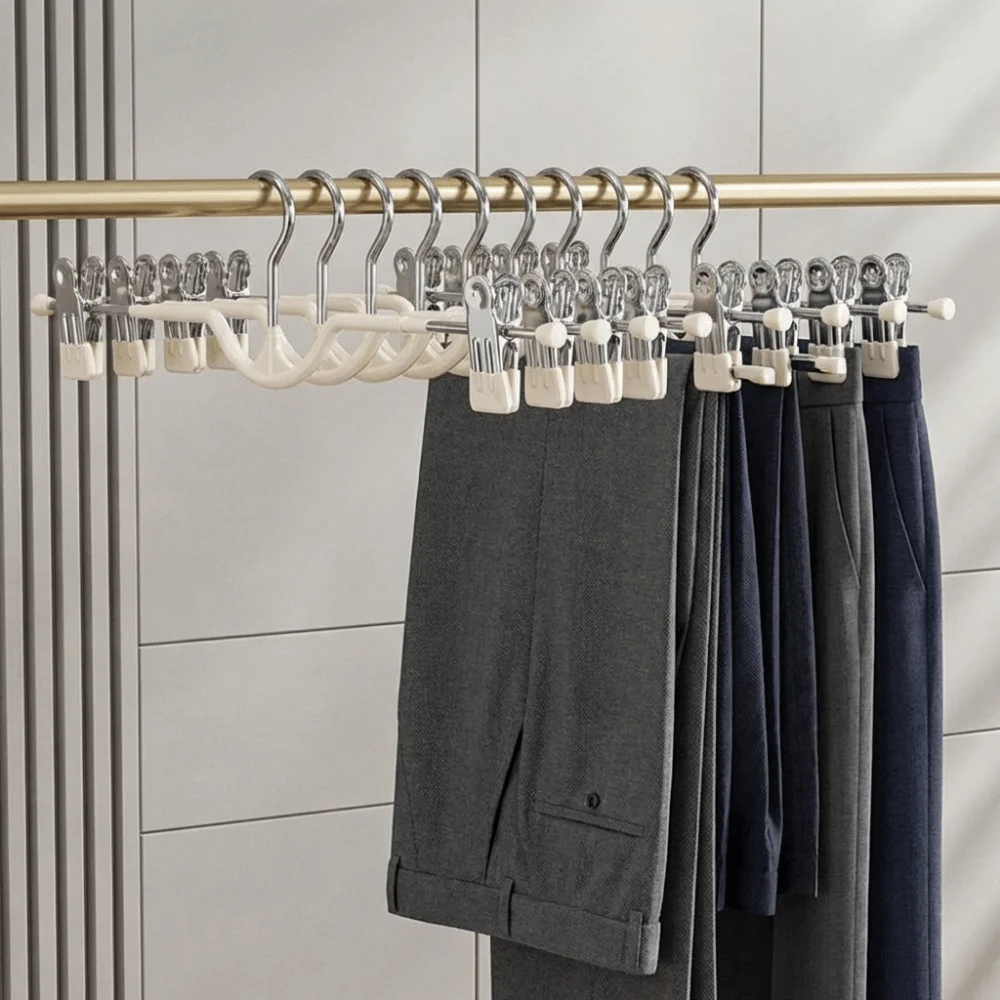 Cabide de Calças de Qualidade Premium com 5 Camadas, Organizador de Armário Antiderrapante de Madeira Flocada para Gravatas, Lenços e Mais